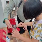 お友達や家族みんなが集まる中、自分の作品の事を発表しました。