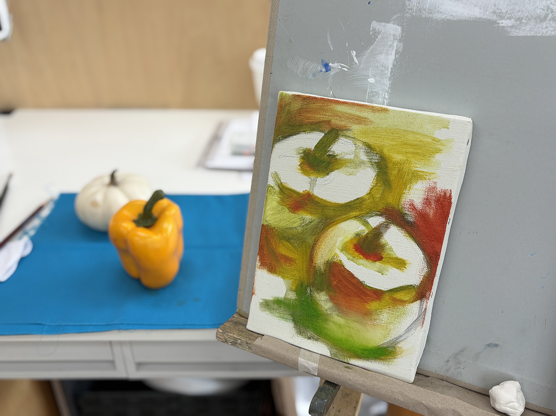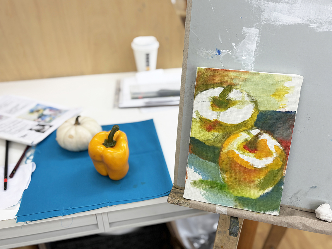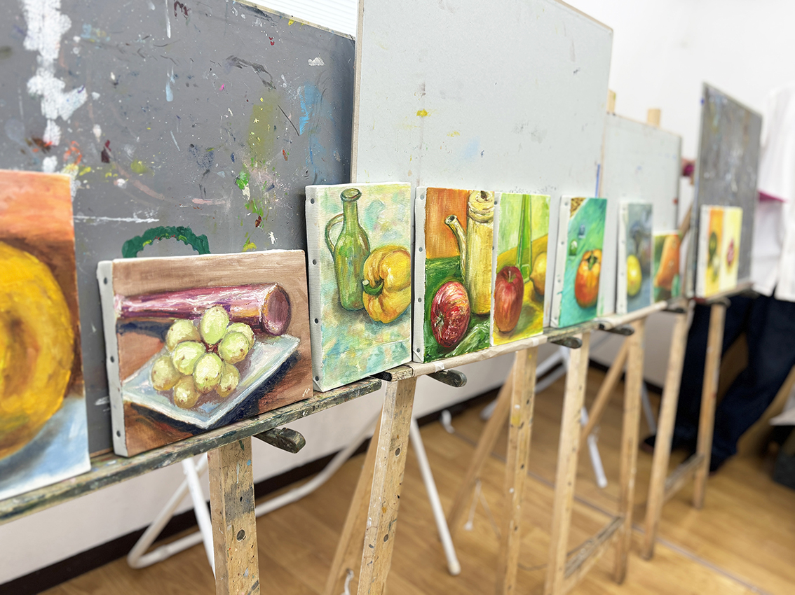 いつもは日本画クラスだったり、版画クラスだったり、絵画クラスだけれど油彩はやったことないという方、