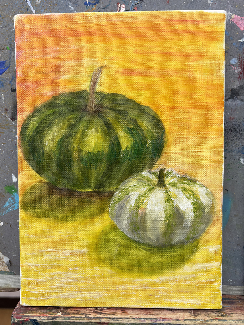 約2時間ほどでサムホールサイズのキャンバスに油絵を描きます!!